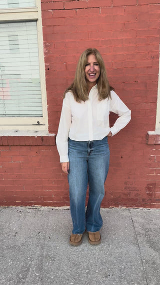 The ankle-crop length is defined by a 28-inch inseam, complementing the expansive 19-inch leg opening to achieve the sought-after modern wide-leg profile.