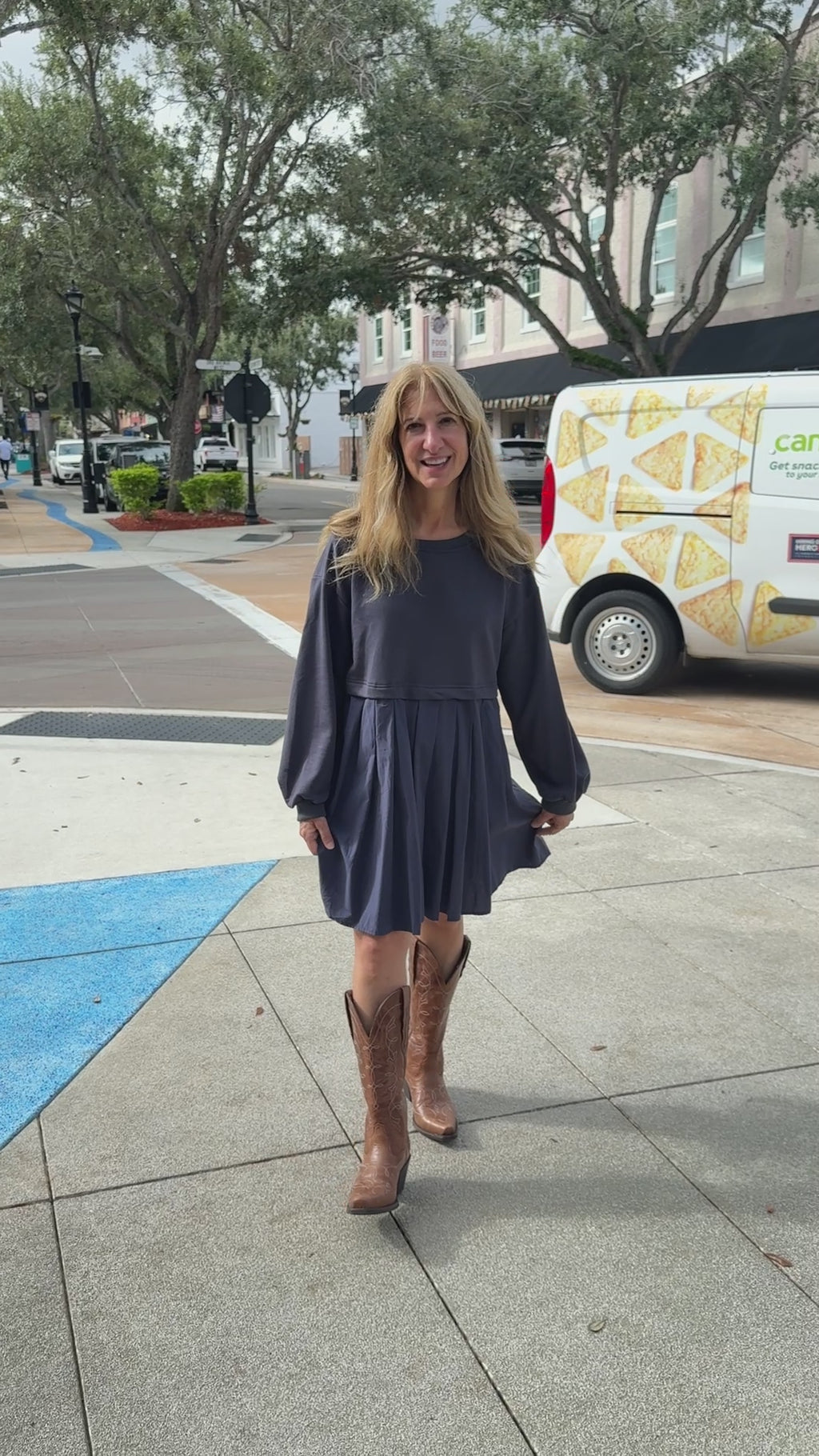 Mixed Media Long Sleeve French Terri knit Pleated Dress