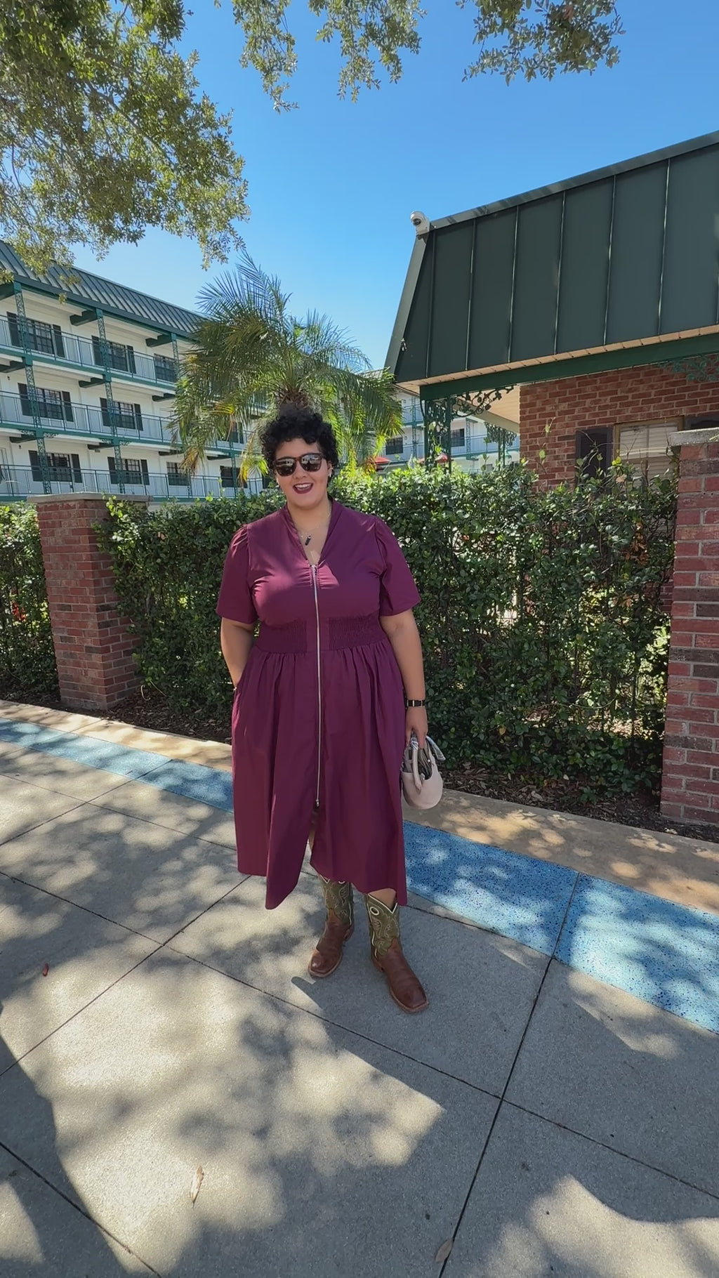 Short Sleeve Zip Front Midi Dress features a flattering and comfortable design for all body types.