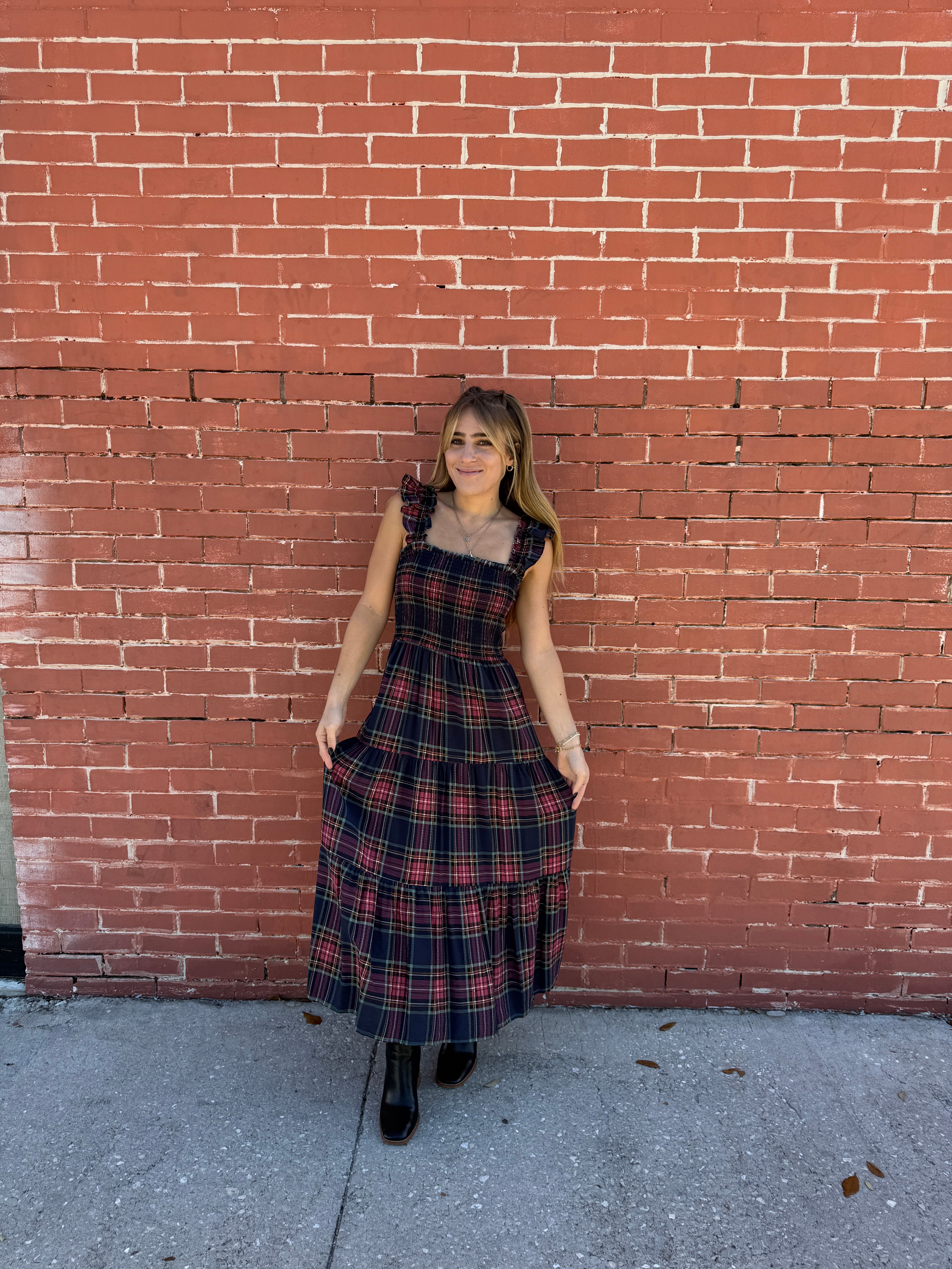 Plaid Smocked Tiered Midi Dress is designed to be the quintessential holiday garment, offering a festive and charming look.