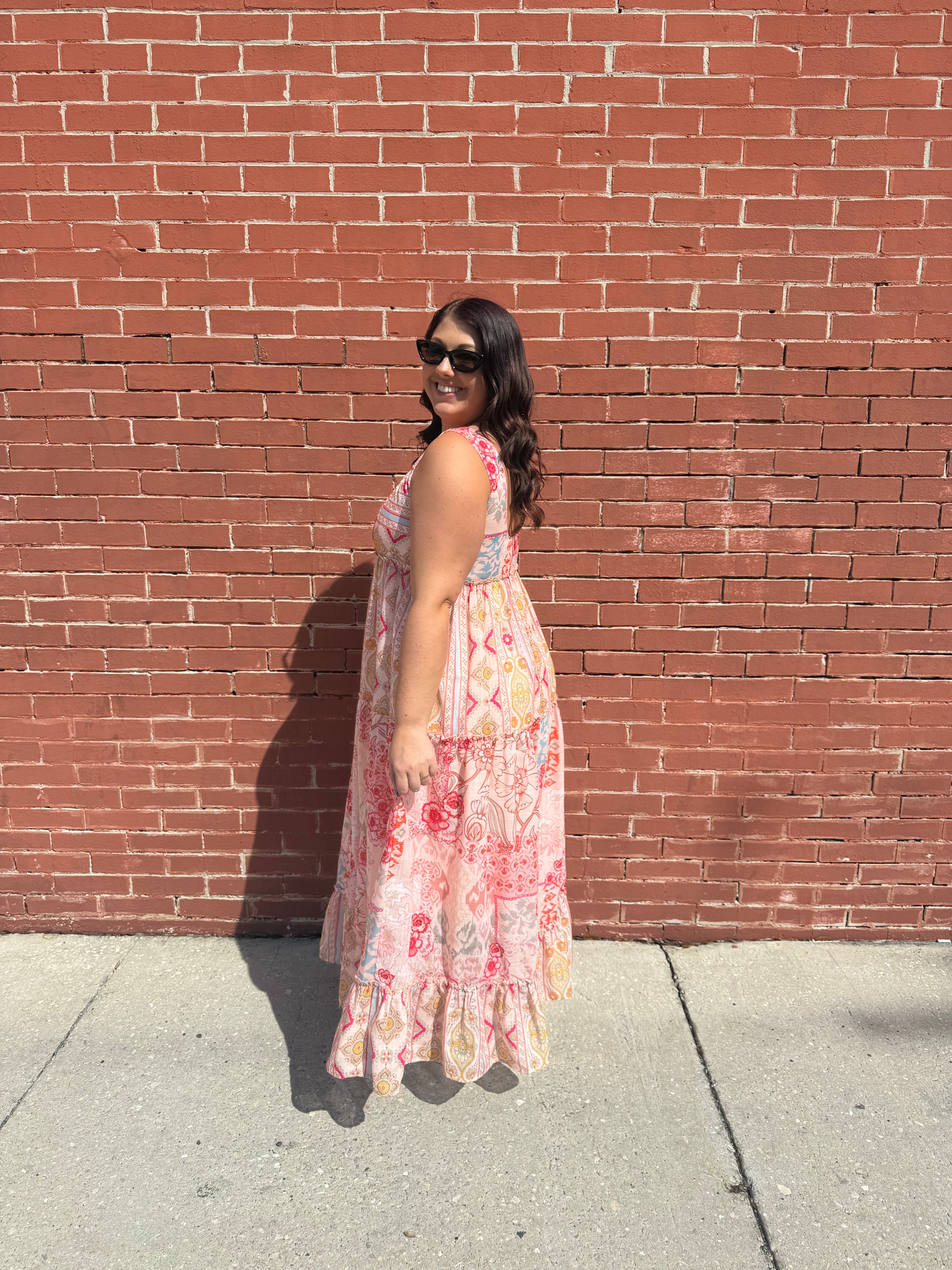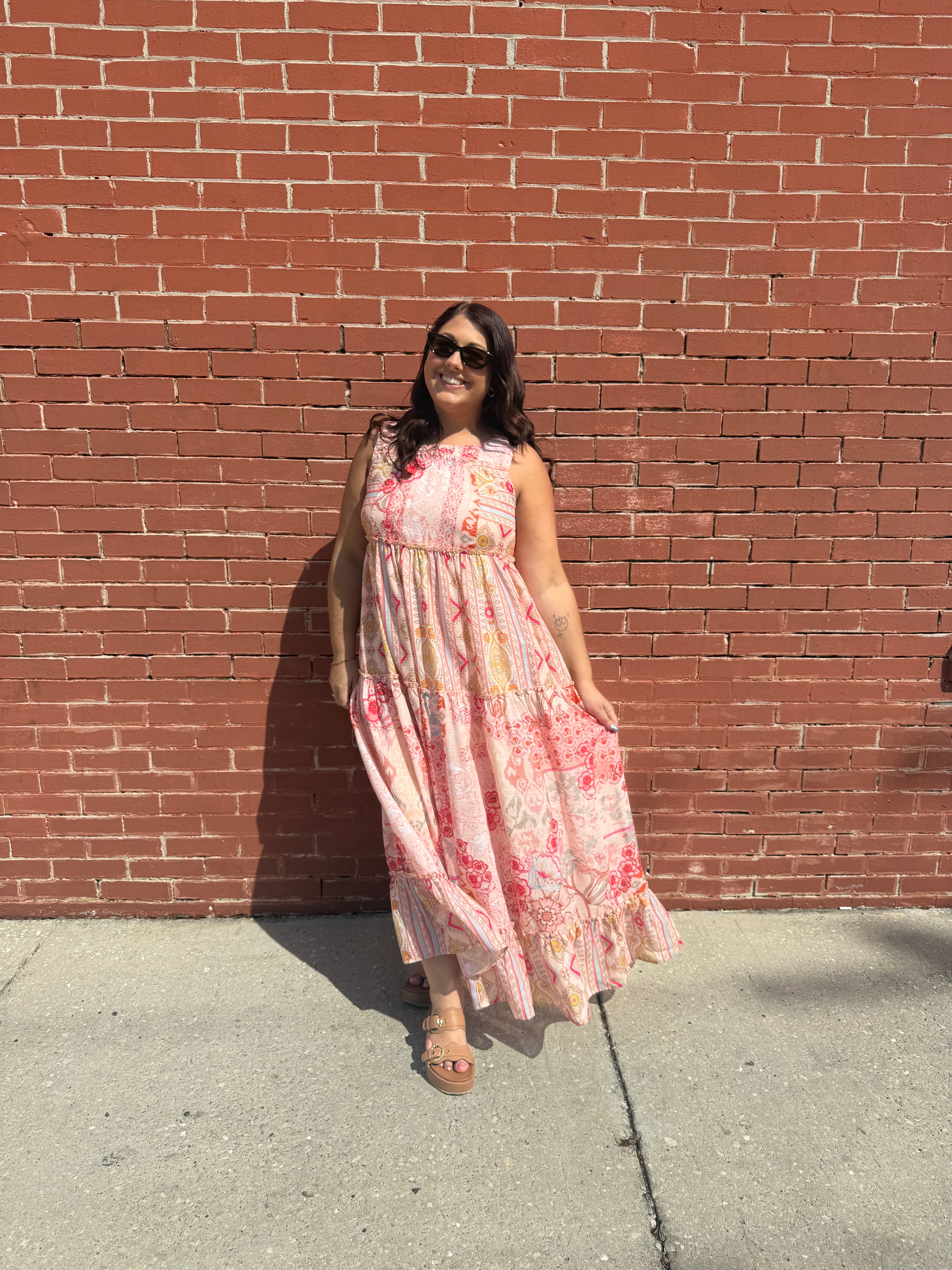The Geo Floral Mix Sleeveless Tiered Maxi Dress is a stunning piece that combines a vibrant patchwork pattern with a flowing silhouette to offer a truly refined bohemian aesthetic. This comfortable sleeveless design serves as an elevated essential for sunny days and warm weather adventures. You should invest in this coveted style now to define your seasonal collection with a look that is both timeless and trendy. The effortless drape ensures you feel as good as you look while enjoying the breezy comfort of this beautiful tiered maxi.