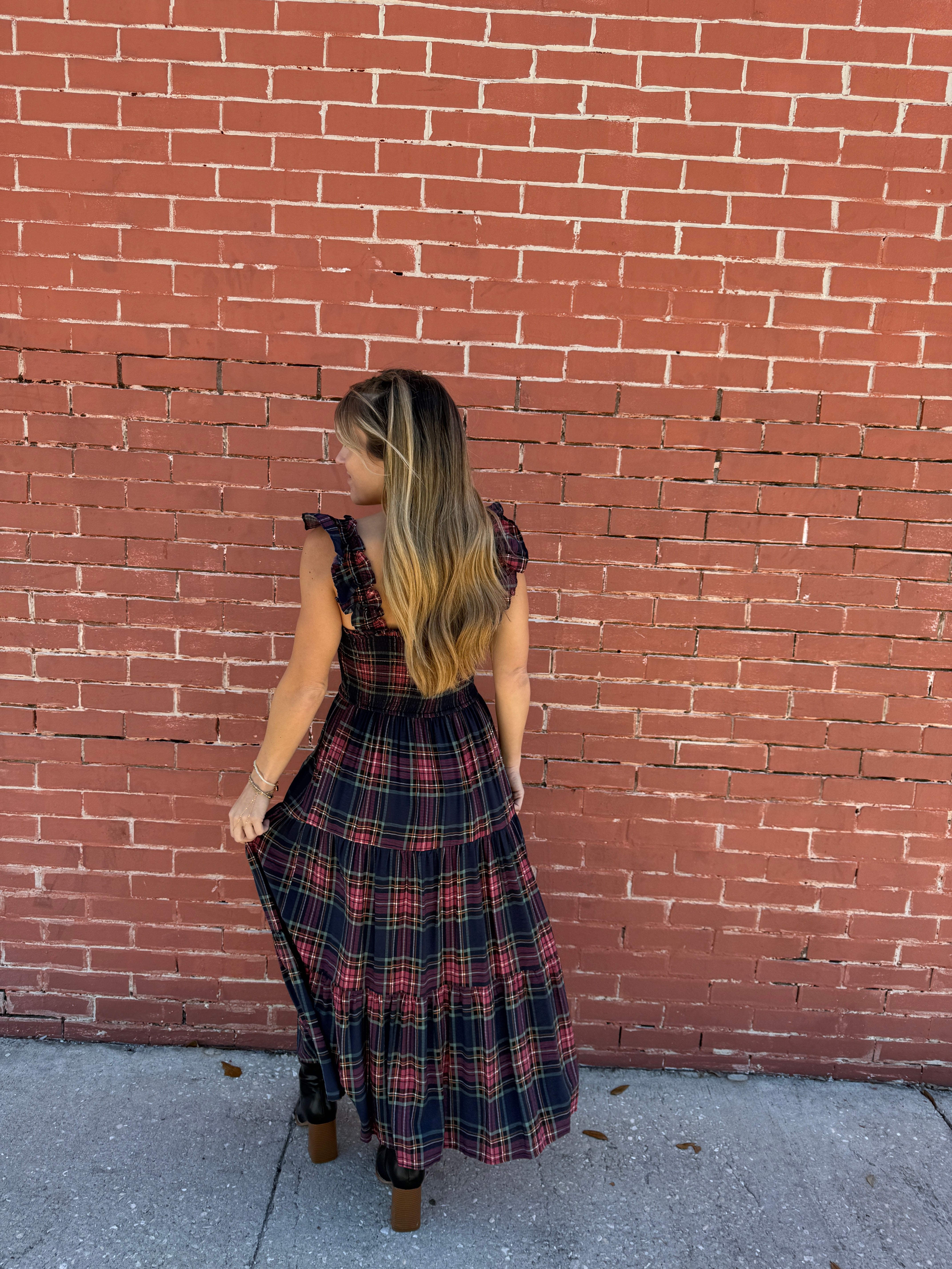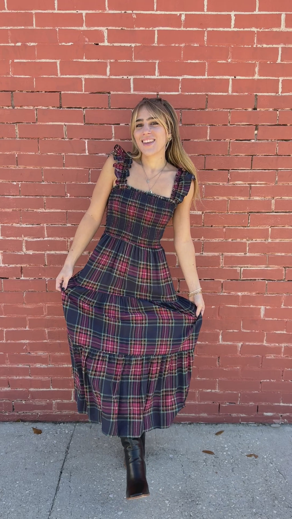 Plaid Smocked Tiered Midi Dress is designed to be the quintessential holiday garment, offering a festive and charming look.