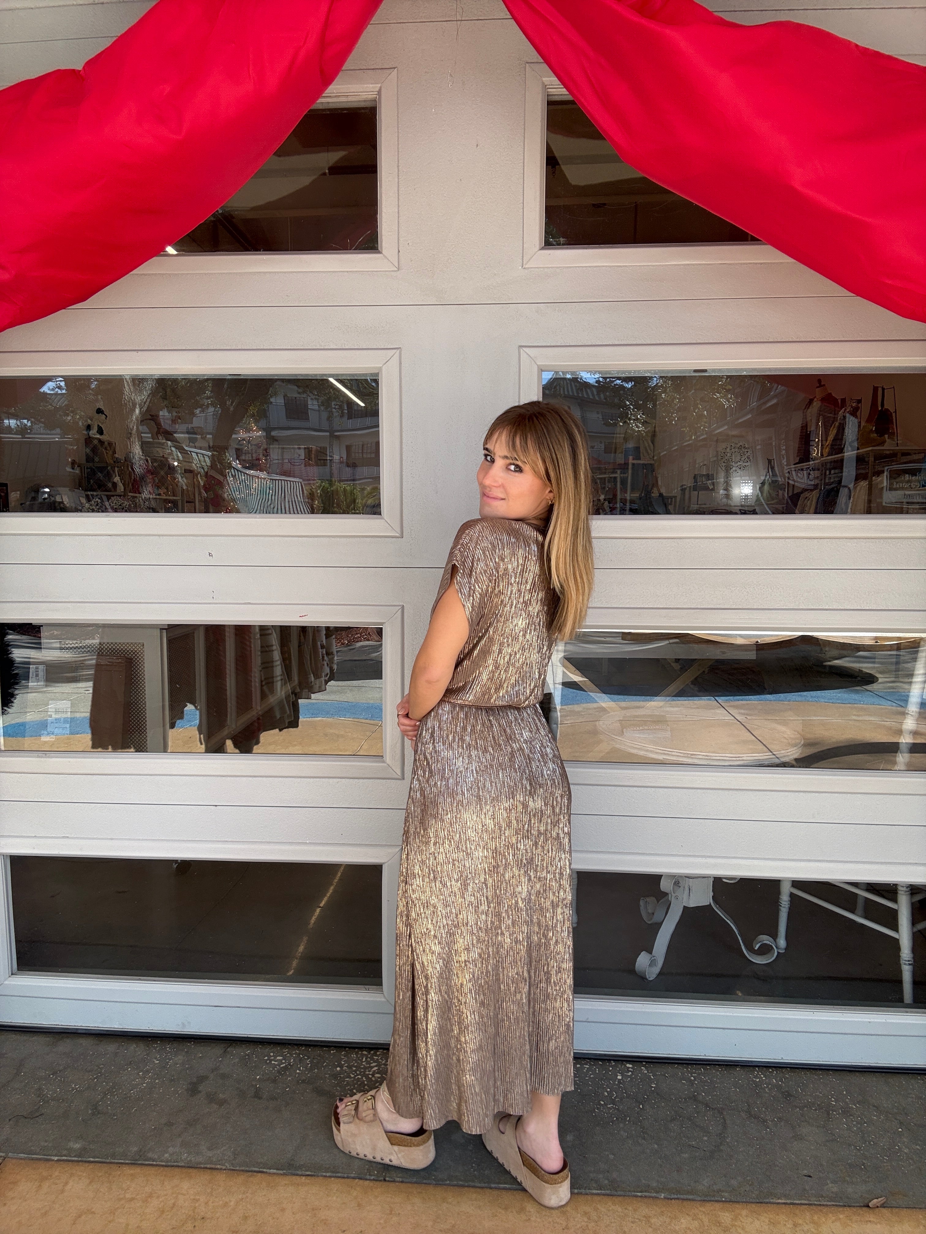 Mocha Gold Midi Dress is a dazzling midi dress features a striking gold color, making it an excellent choice for special occasions and events.