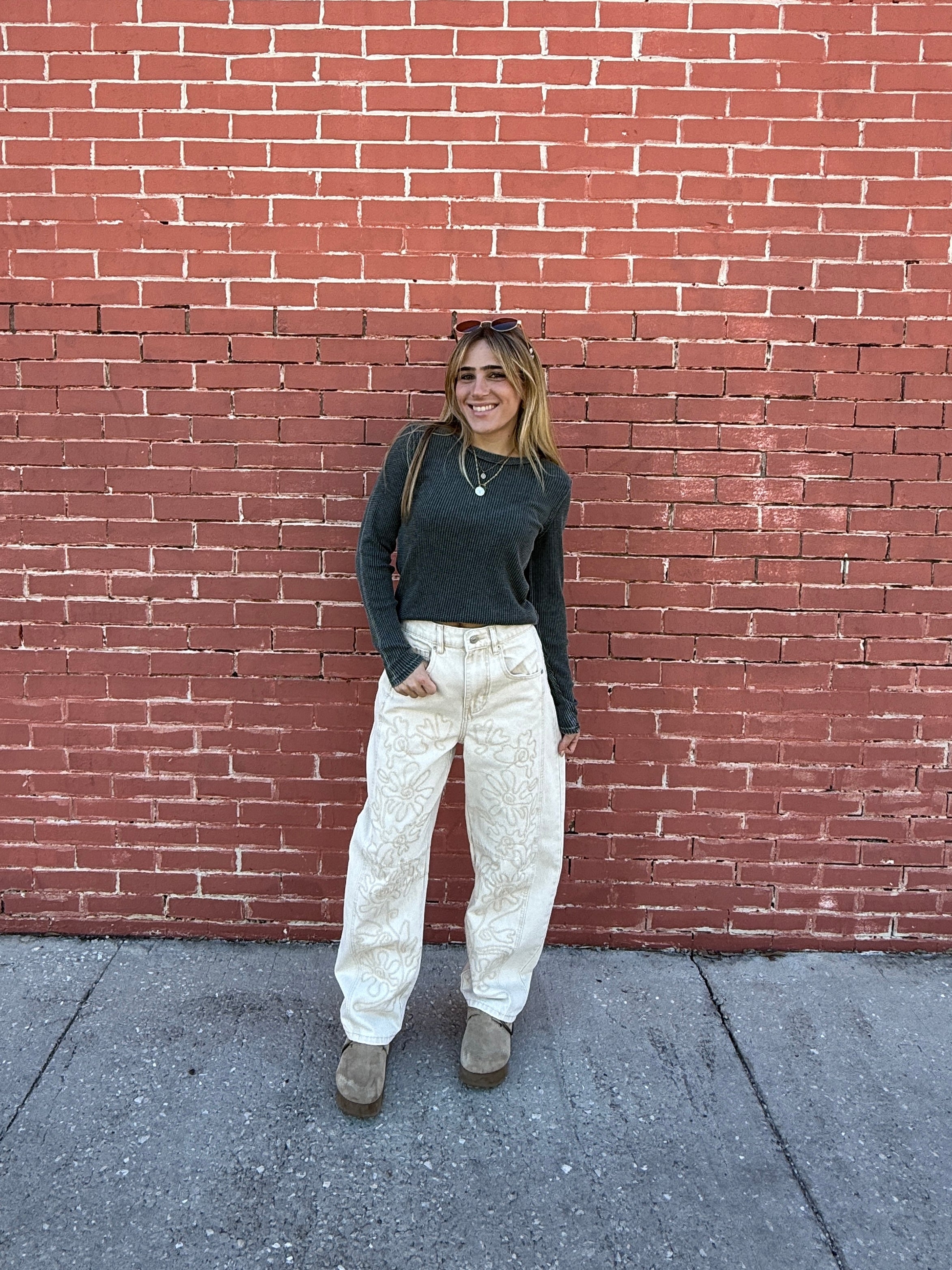 Embroidered Barrel Jeans are a perfect blend of style and comfort.
