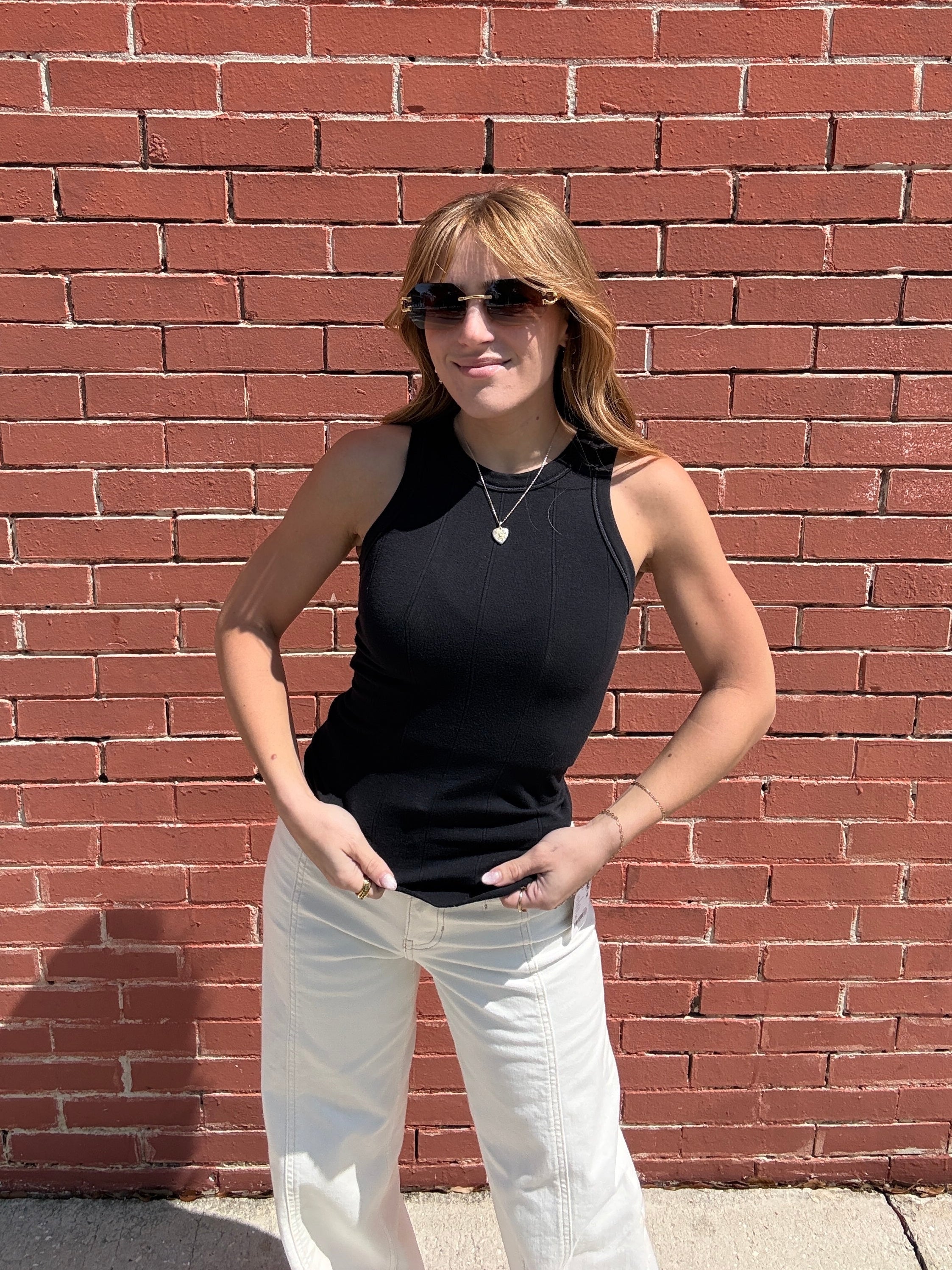 The soft, ribbed texture gives it a premium feel, while the relaxed yet slim fit makes it incredibly versatile. Pair it with denim shorts and a statement belt for an effortless, sun-soaked look.