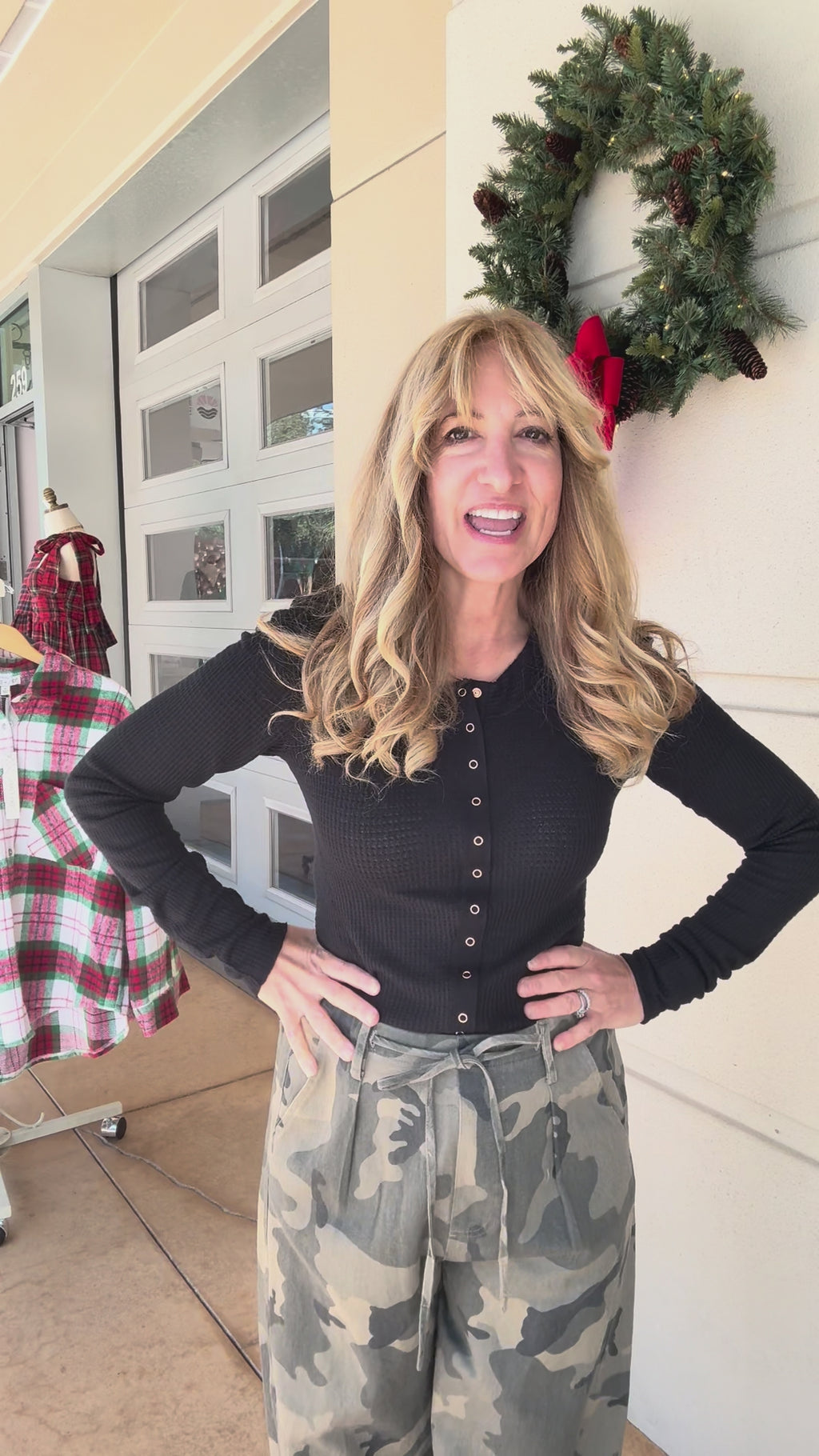 It features a secure snap front closure, which allows it to be worn buttoned as a top or open for layering.