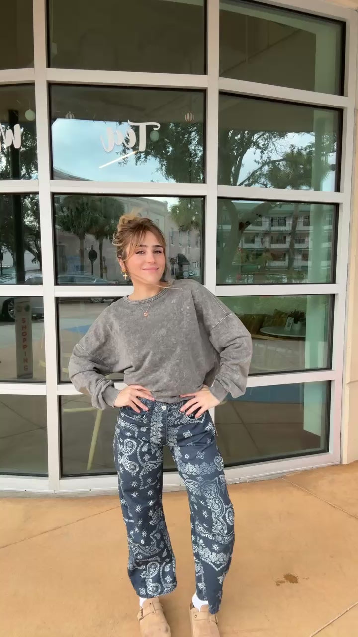 Our most-loved barrel jeans from our We The Free collection, now featured in a playful printed fabrication.