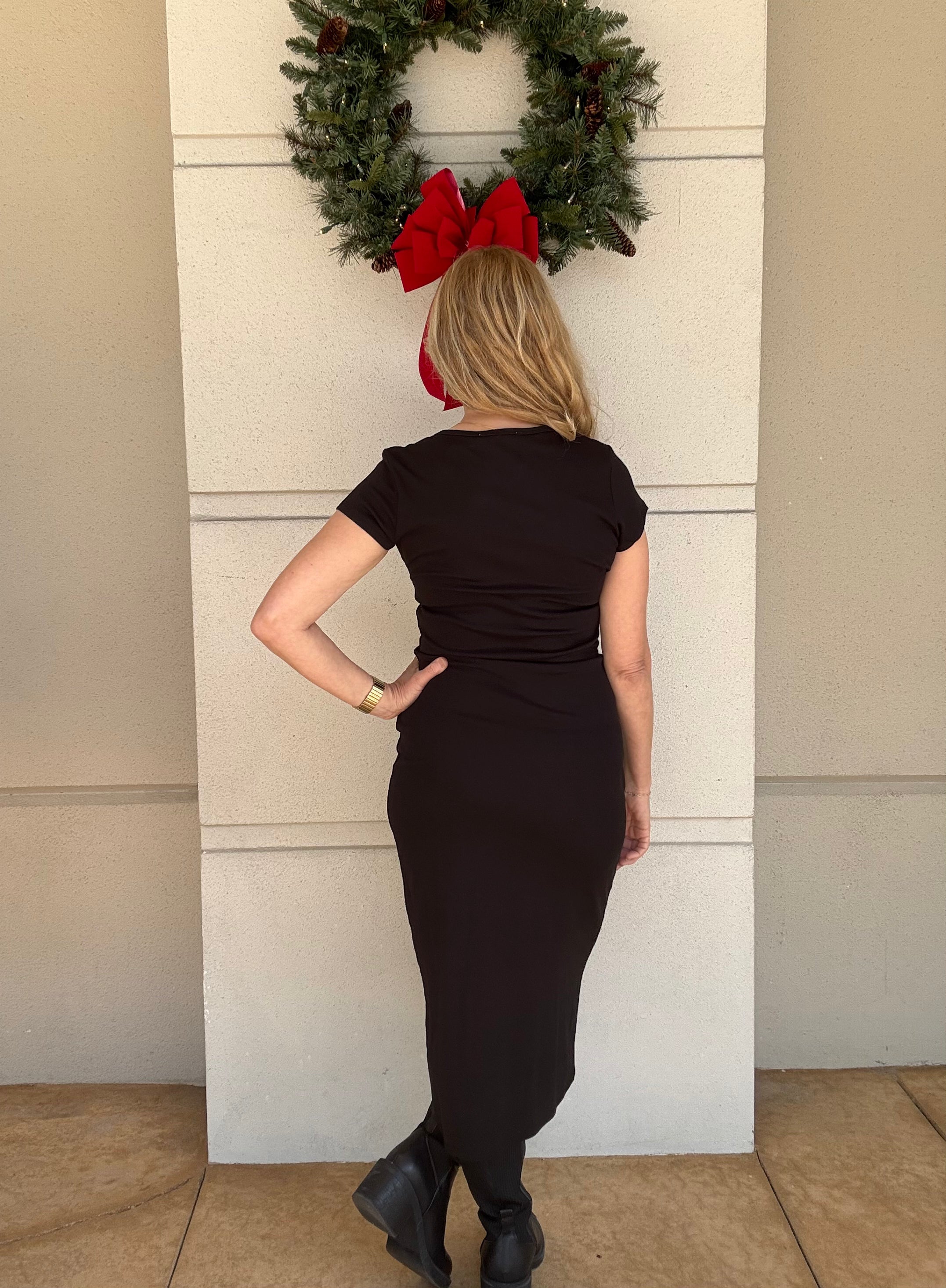 Knit Rayon Spandex Short Sleeve Bodycon Midi Dress is designed with a bodycon silhouette, offering a close and flattering fit that accentuates your shape.