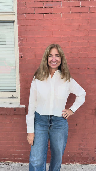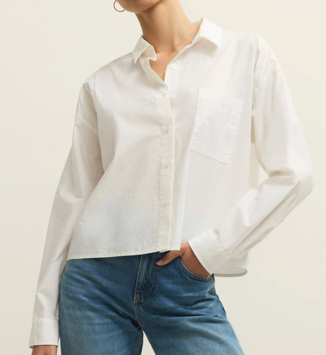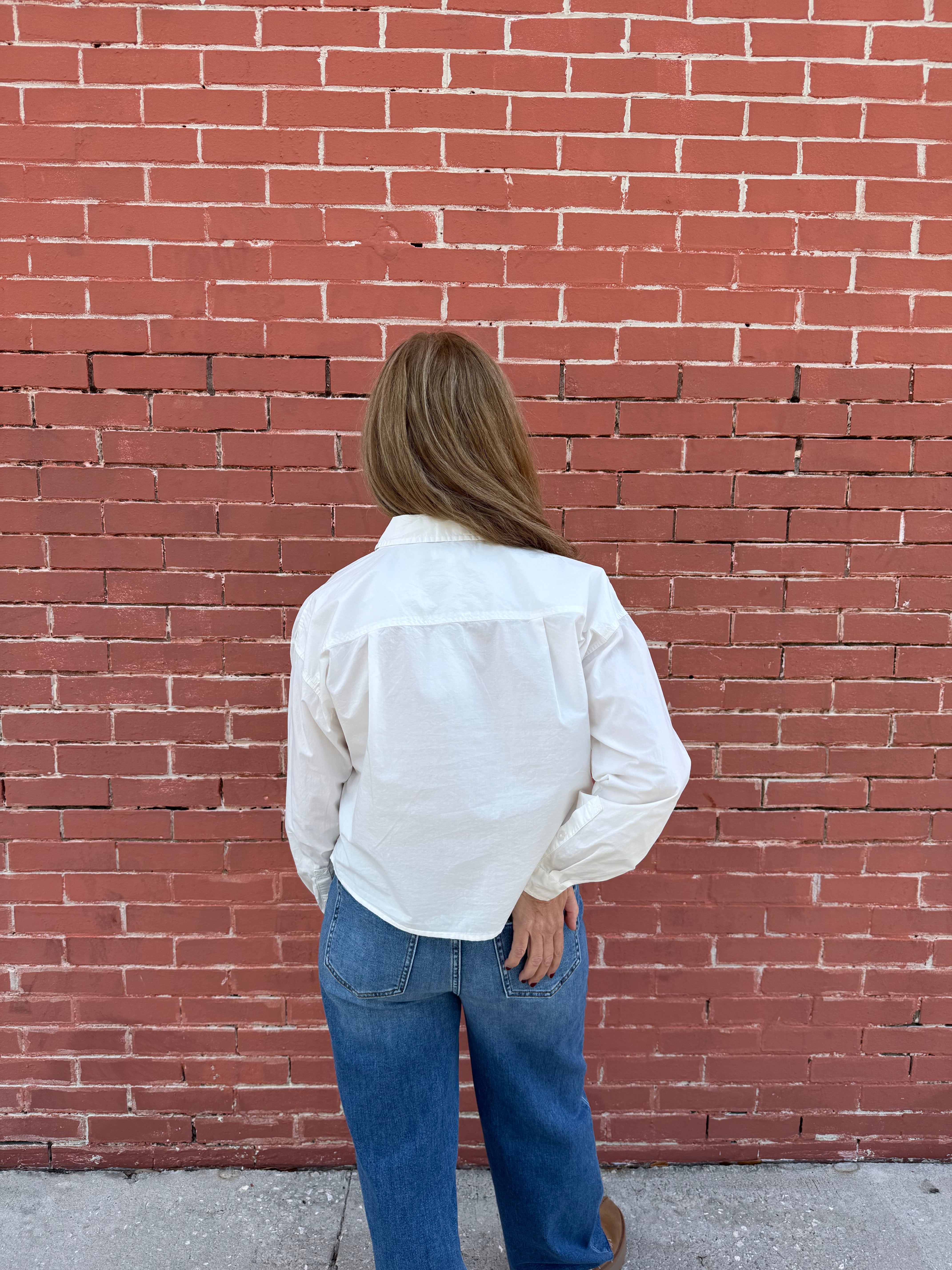 Crisp and lightweight, this cotton poplin button-up instantly elevates any outfit. Designed with a meet-and-greet fit and straight hemline, it feels modern and easy to style with denim, skirts, or tailored pants for a refined everyday look.