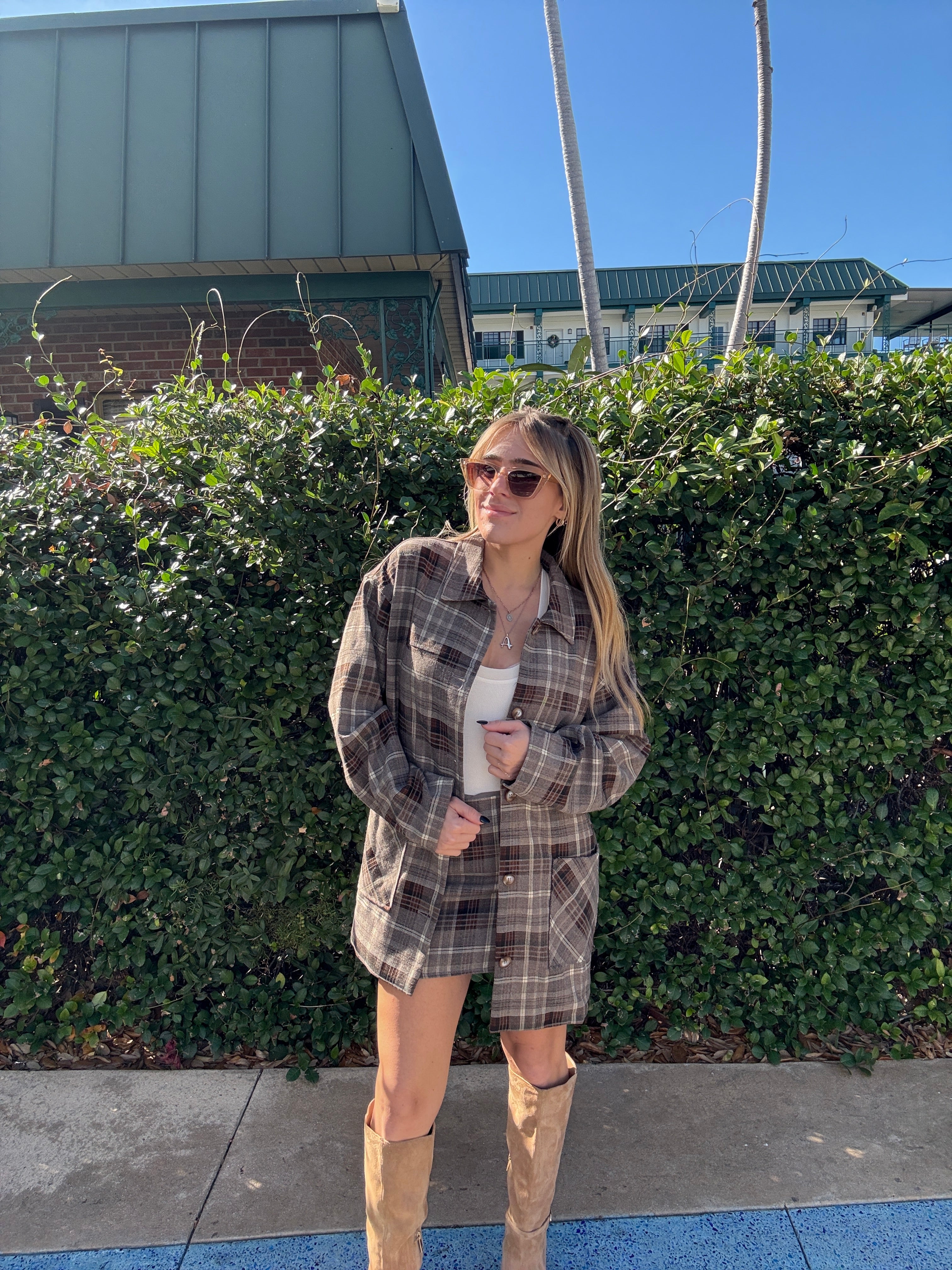 This ensemble is an Oversized Plaid Jacket And Skirt Set, providing a complete, fashionable look.