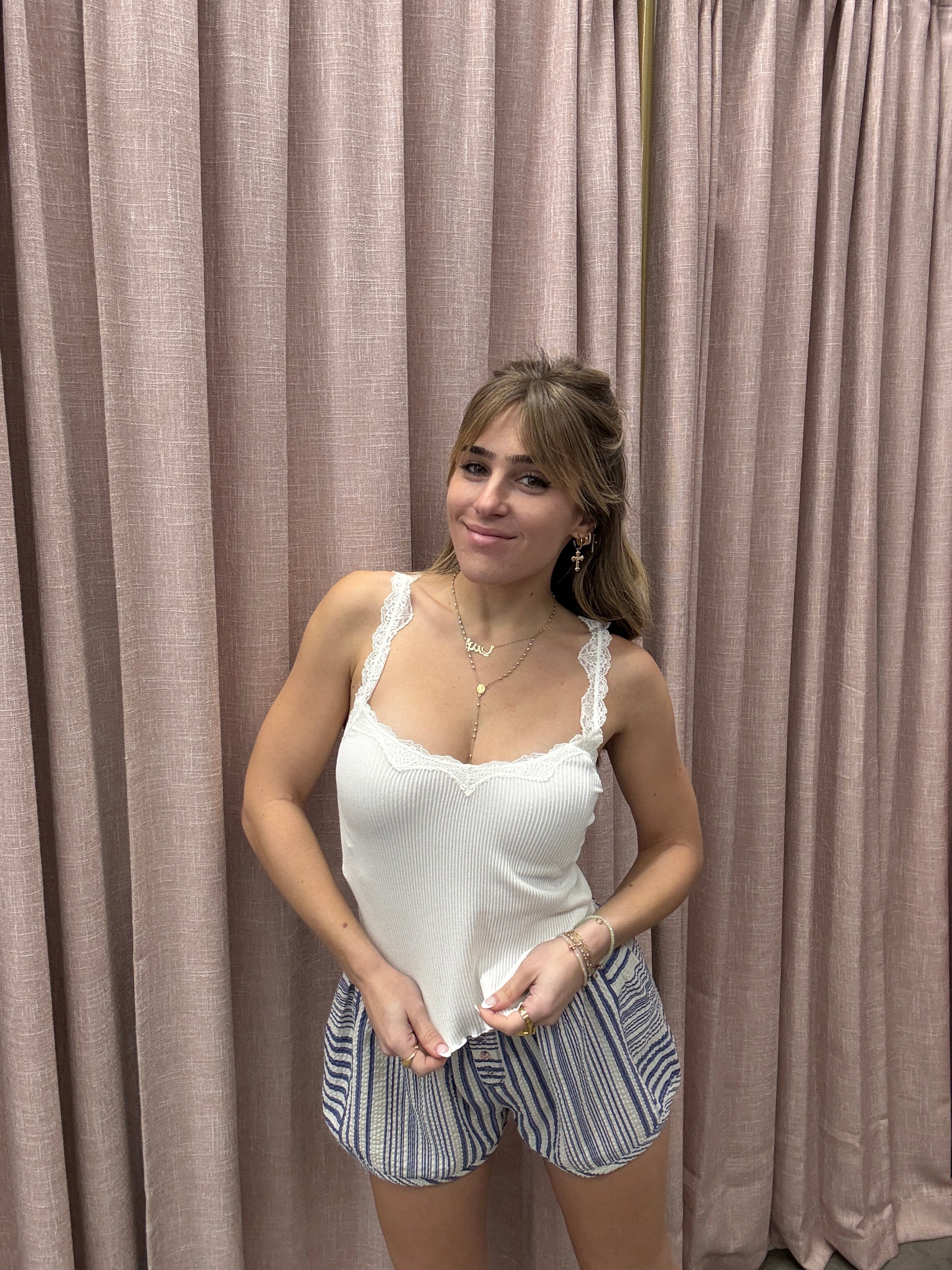 Free People Spring Fever Cami – Pink & Navy Boutique
