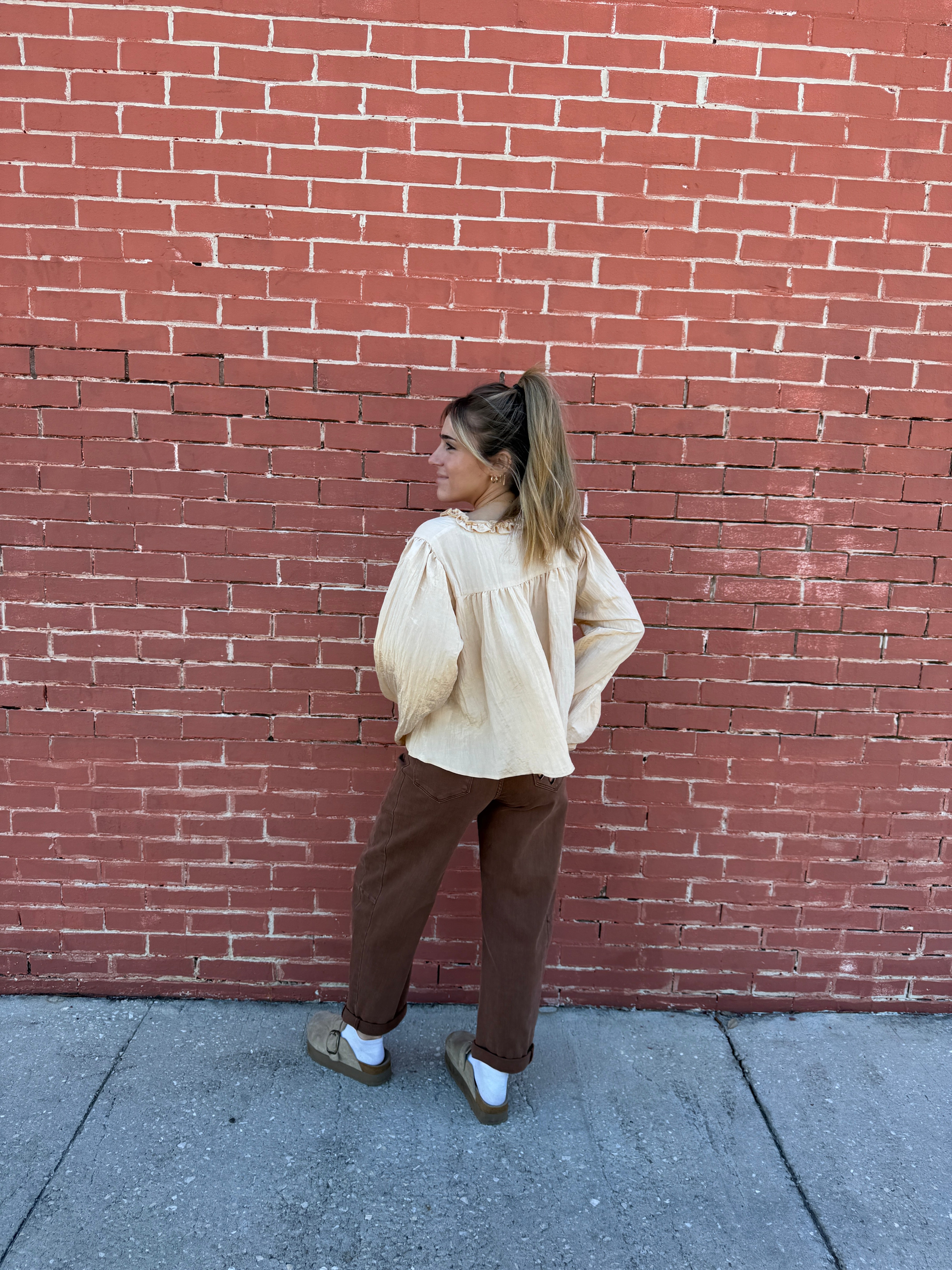Sheer Lace Detail Blouse is a sophisticated long sleeve blouse is a beautiful cream color, offering a soft and versatile neutral shade.