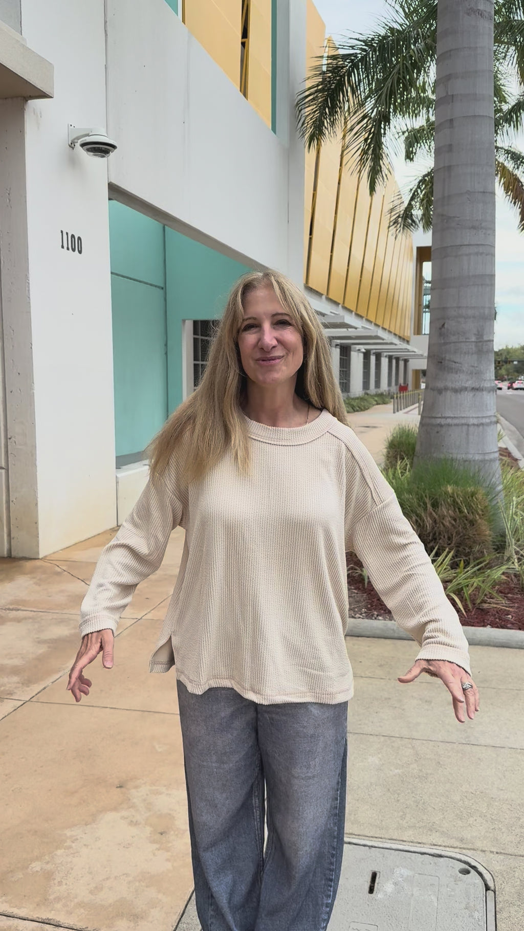 Crewneck Ribbed Long Sleeve Knit Top – Pink & Navy Boutique